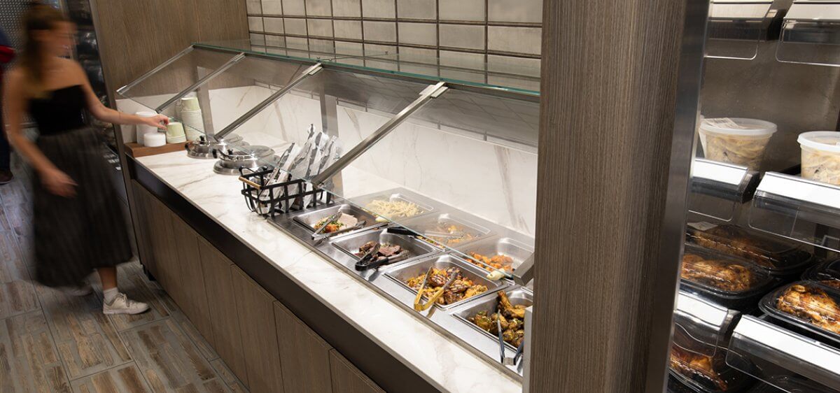 The Market at East Bank Club is open to the public and is a one-stop shop for homemade food, fresh coffee, artisanal products, and much more. Stop by in the morning for a cup of Metropolis Sawada coffee or Rishi organic tea and baked goods made here in our kitchen; visit our salad and bowl bar or hot bar to create your own meal; grab a Fit Meal™ (designed by our dietitian) for a nutritious and satisfying lunch; bring home a fully prepared meal kit for the whole family for dinner; and pick up carefully purveyed artisanal packaged goods and even essential home goods. The Market also offers micro-farmed greens grown onsite, craft beer and wine, fresh produce, and more. Whenever you're not sure what's for dinner, when you want a delicious and healthy lunch, or you need to make a quick stop to avoid a trip to the grocery store, the Market has you covered!